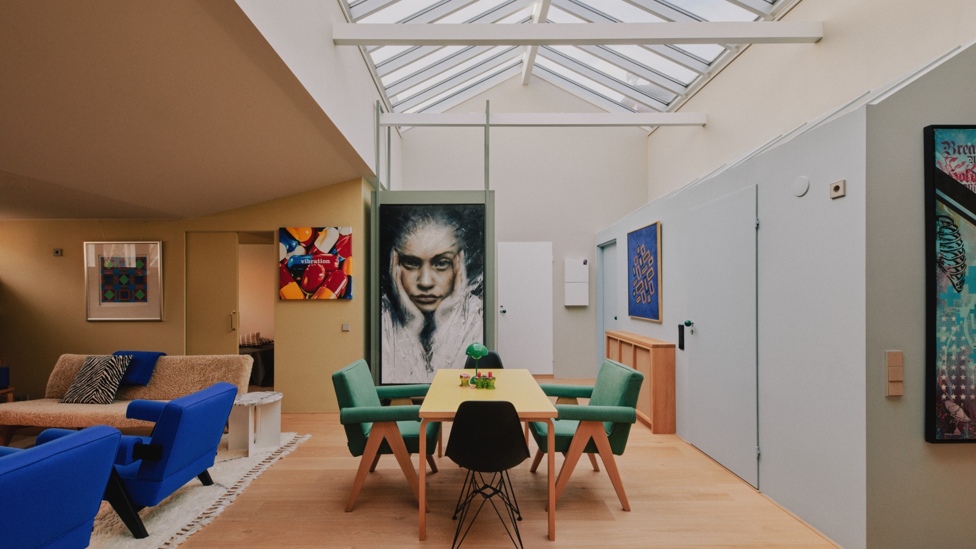 The homeowner is an art and design enthusiast, and the interior was conceived as a “colourful canvas” for his collection. The client was closely involved throughout the process, sourcing specialised craftsmen skilled in trimless door and window solutions and selecting vintage door hardware installed throughout the home. The result reflects both his commitment and the high level of craftsmanship achieved across the project.